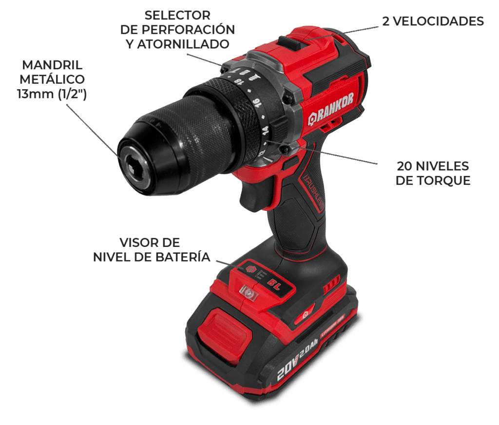 Eleva tus proyectos de bricolaje y construcción con nuestro Taladro Percutor Atornillador Inalámbrico RLID20001. Equipado con tecnología brushless y una potente batería de 20V, este taladro es la herramienta ideal para perforar y atornillar con facilidad y eficiencia.
